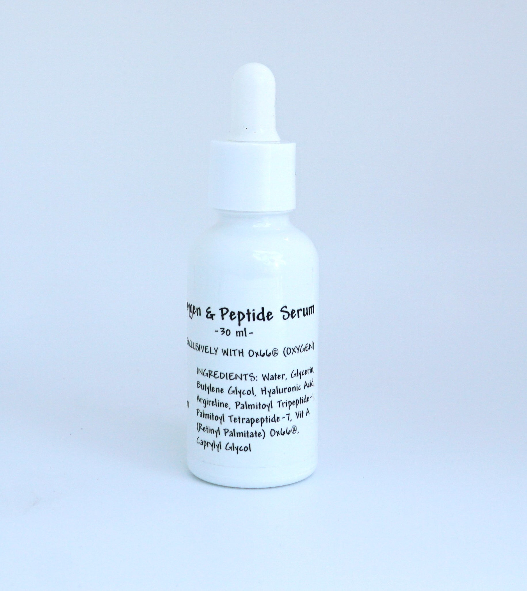 Oxygen & Peptide Serum with Ox66®combines the revitalizing power of oxygen and peptides to boost collagen production, promote cell renewal, and enhance skin elasticity, leaving the skin firmer and more youthful. Infused with Hyaluronic Acid, it provides deep hydration, plumping the skin and smoothing fine lines, while Argireline—a peptide known as a "botox-like" compound—helps reduce the appearance of wrinkles by relaxing facial muscles. This powerful blend nourishes, hydrates, and rejuvenates the skin, making it ideal for daily use on all skin types.